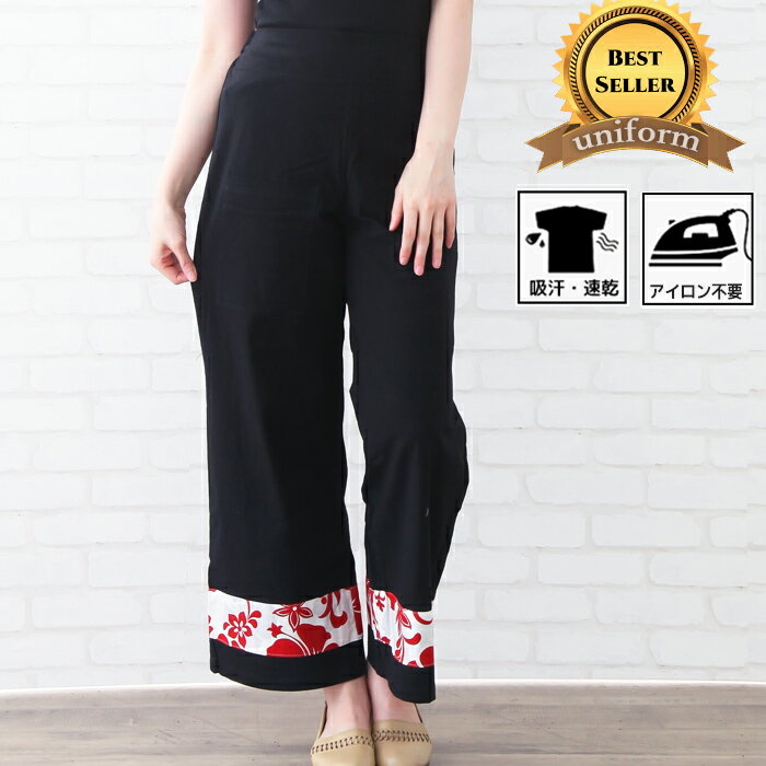 【最大 800円OFFクーポン配布中】アジアン エステ ユニフォーム 制服 ボトムス ハワイアン ブラック 機能性 ロングパンツ レディース ゴム 黒 hawai マッサージ 業務 ハワイ ボトムス 業務用 イージケア 速乾