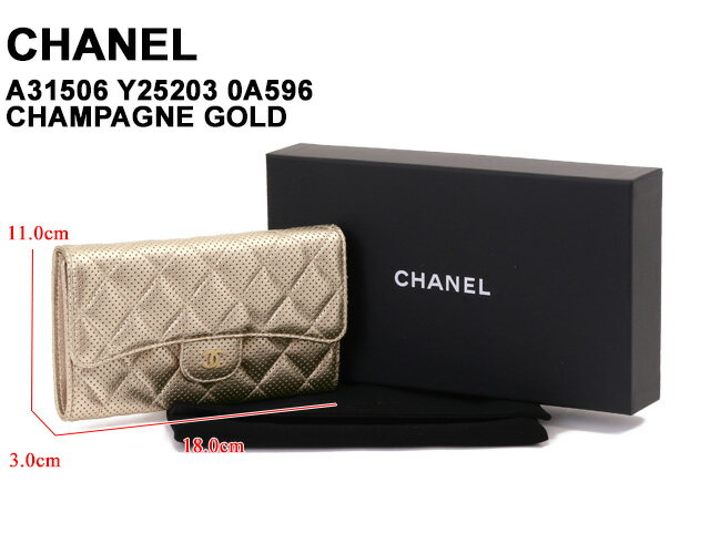 シャネル/CHANEL"クラシックフラップウォレット"パンチングゴートスキン・GOLD金具・3つ折り長財布(シャンパンゴールド)A31506 Y25203 0A596/CHAMPAGNE GOLD