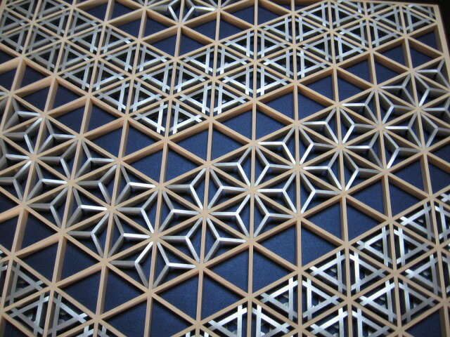 組子細工に色彩を添えた新しい組子細工額装壁飾り(パネルアート)です。