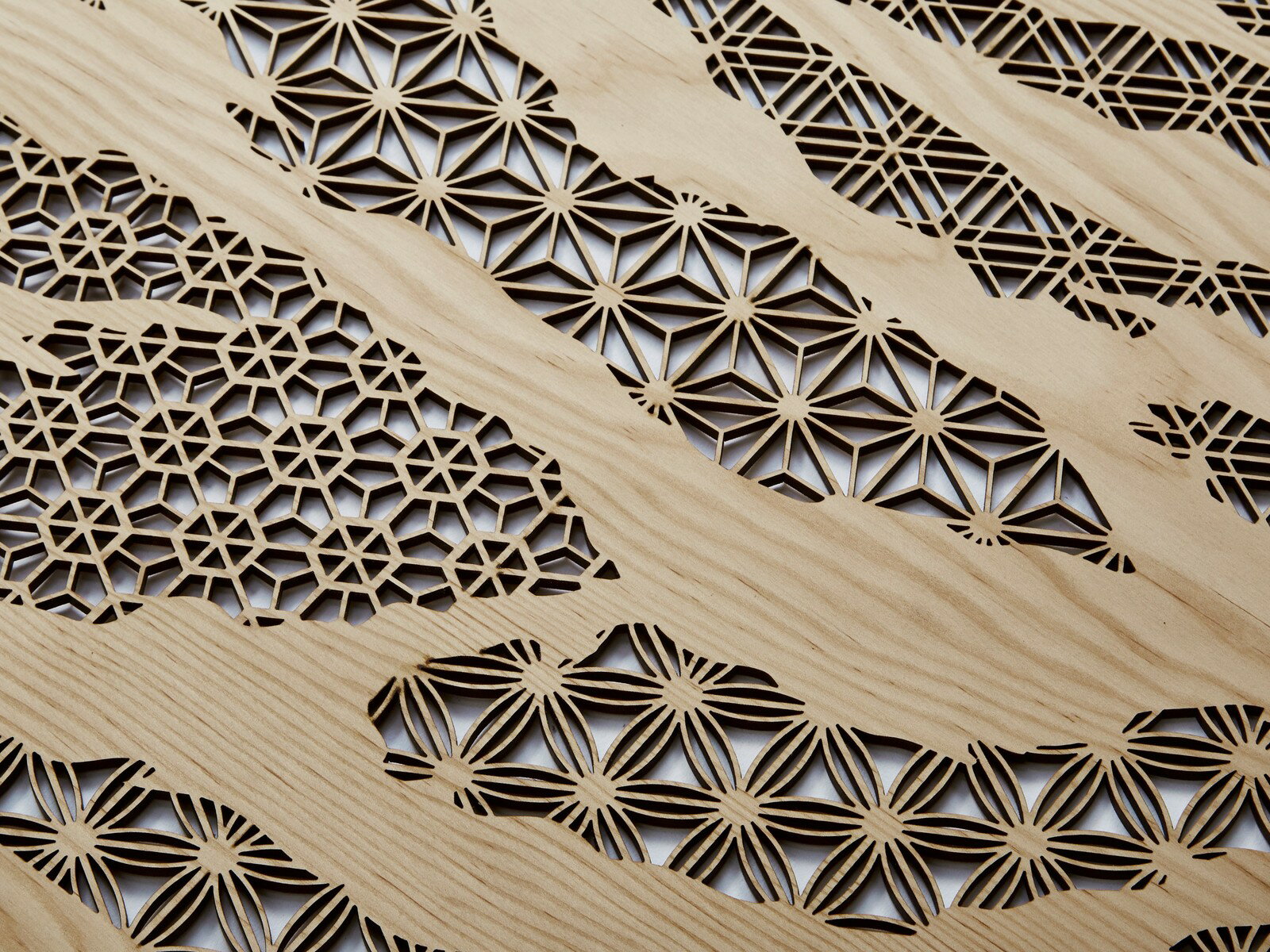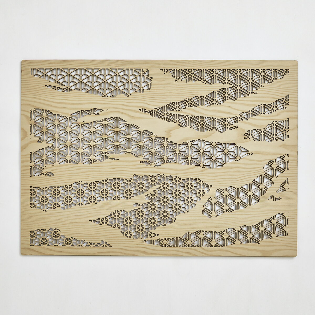 今回も前作と同様5種類の縁起のいい模様になっております! レーザー加工で繊細な組子模様を今回、またさらに細かく仕上げました! 日本古来からある模様ですが素敵だと思いませんか? 和室、洋室どちらにも似合う模様で当店で1番人気があります!お部屋の壁にアクセントをつけたい方、雰囲気を和モダン変えたい方には必見の1枚です!ポスターサイズになっておりますので、額縁に入れて飾っても素敵ですよ!縁起のいい模様ばかり集めて作っていますので、今、新築お祝いやお店の開店お祝いにプレゼントされる方が多いです。